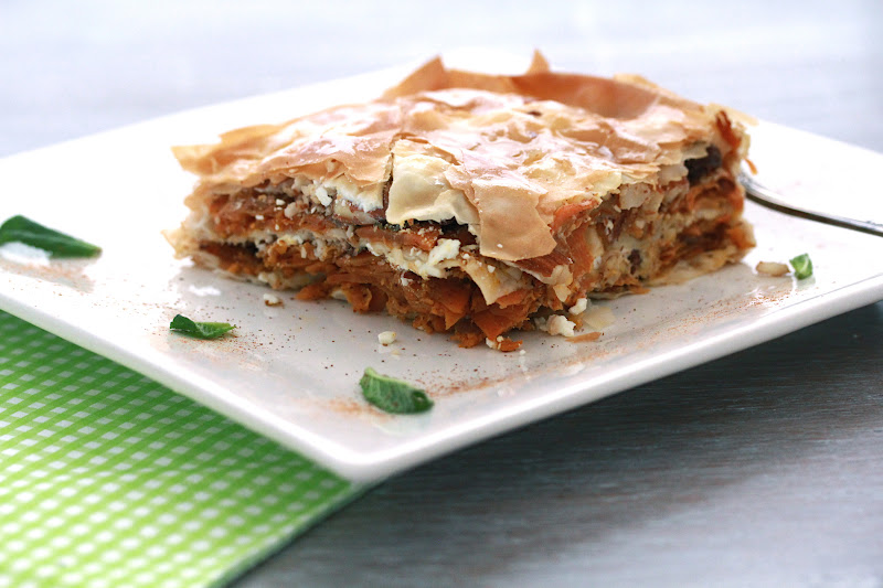 J’ai beaucoup aimé l’utilisation des feuilles de filo dans cette recette de baklava salé . L’association des carottes , de la feta , des amandes , de raisins secs avec un léger parfum de menthe et de cannelle est très agréable et fait de ce plat un très bon diner . La recette utilisait de l’aneth , j’ai essayé une première fois et j’ai préféré nettement mon deuxième test en choisissant de mettre de la menthe et des raisins secs .Par contre pour garder un plat bien croustillant je vous conseille d’utiliser des feuilles de filo (plus légères et plus croustillantes) et non des feuilles de brick .