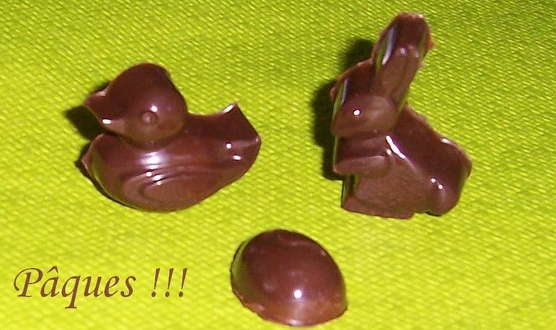 Aujourd’hui je vous propose une petite recette pour ce week-end de Pâques : des chocolats bien sûr !! J’ai utilisé un moule en silicone représentant des sujets de Pâques, mais si vous n’avez pas de moule à chocolats vous pouvez faire des carrés de ganache entourés de chocolat fondu.