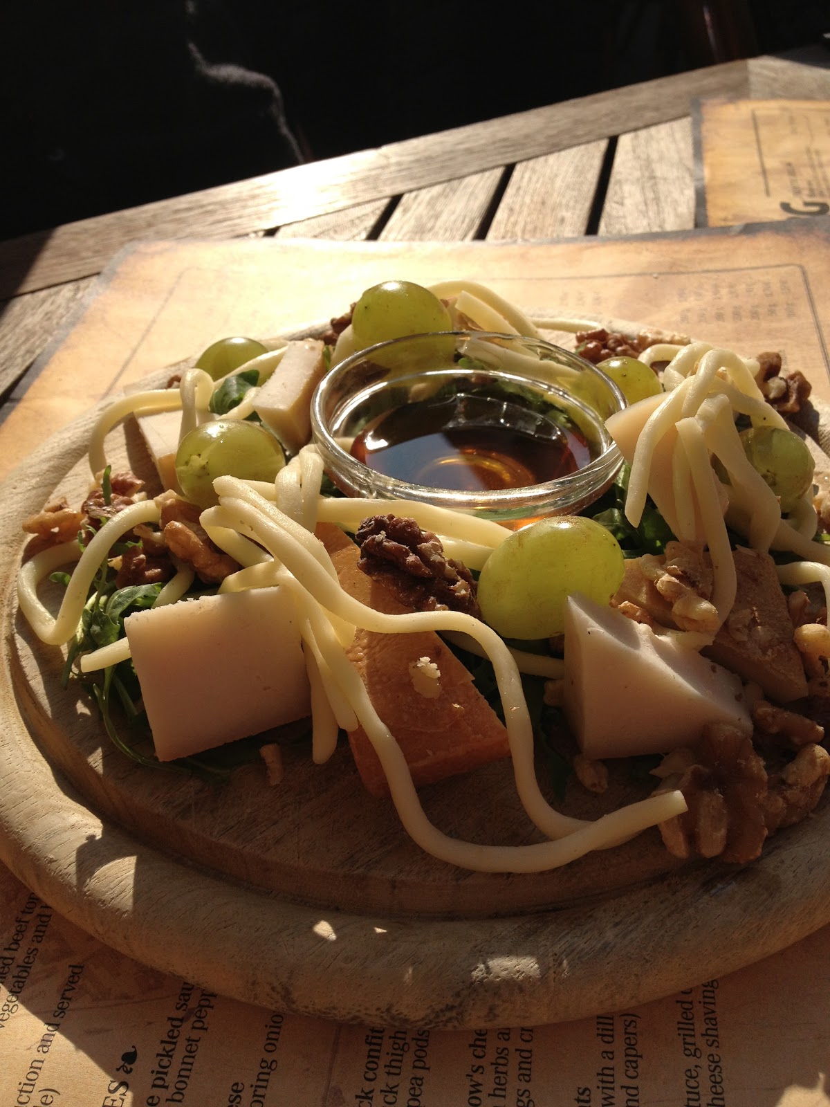 Voilà le fameux fromage spaghetti servi avec du miel et des raisins … très bon
