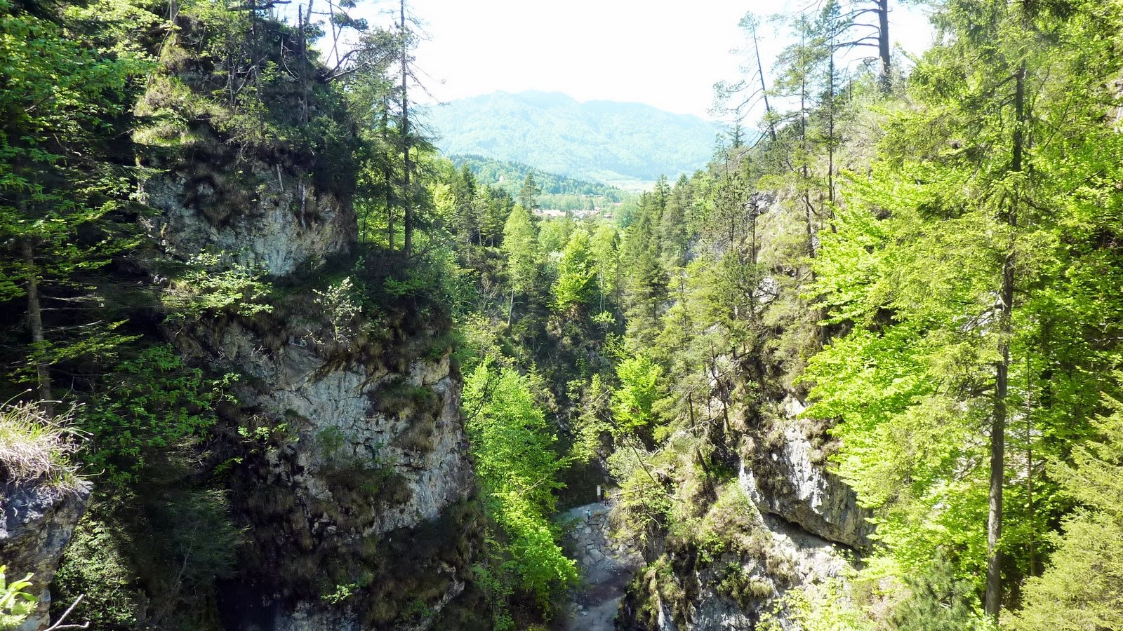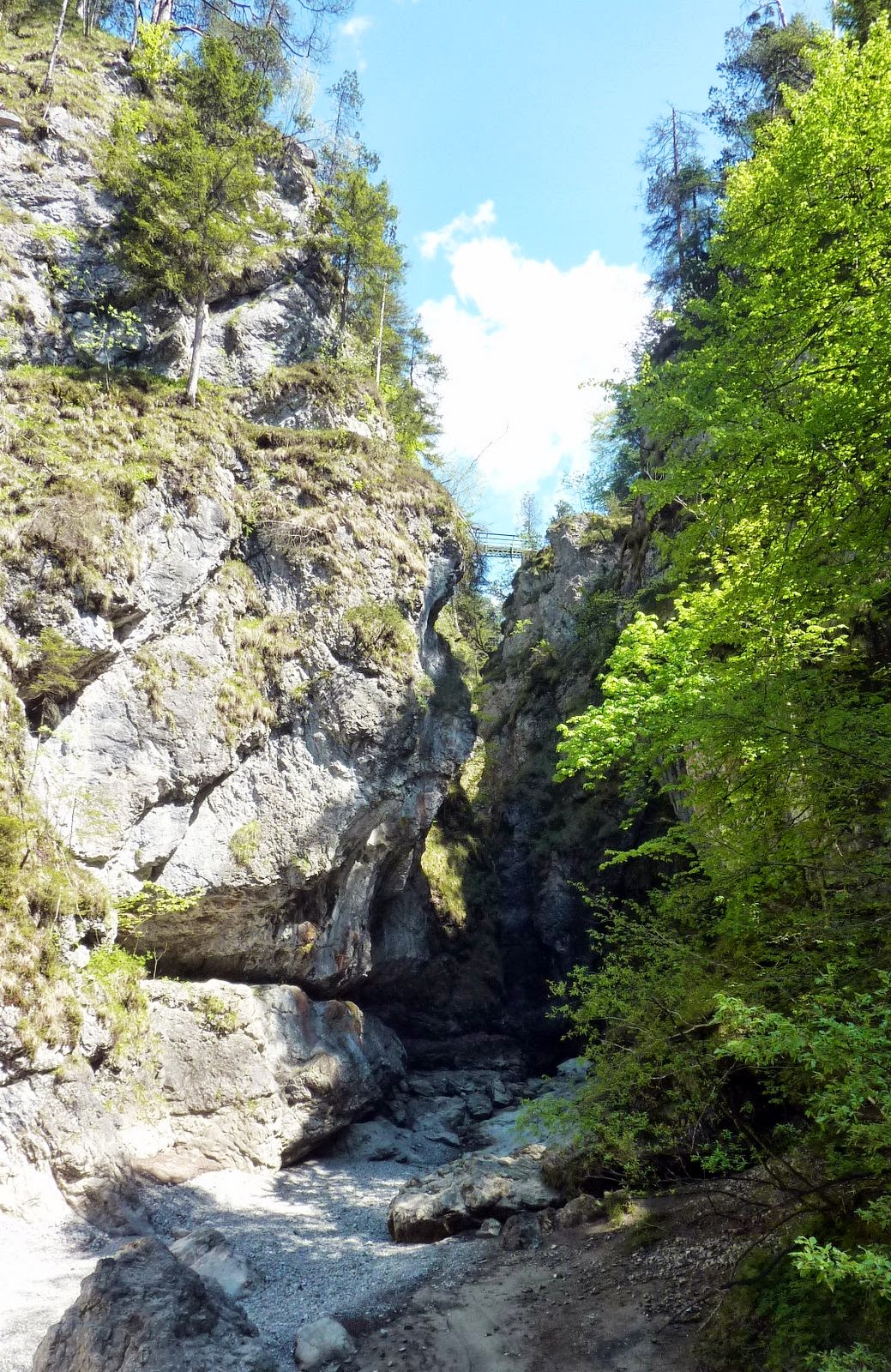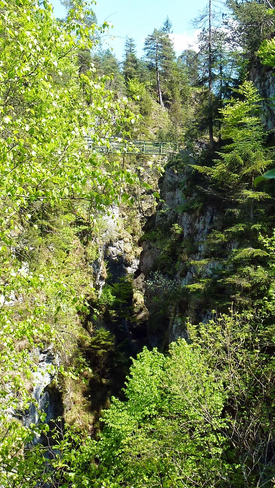 A la fin de la promenade on peut ajouter la visite des gorges d’Asam (Asamklamm), un mini détour à ne pas manquer. Par temps sec, on peut descendre dans la gorge et retourner au centre d’Eschenlohe en suivant le lit du torrent.