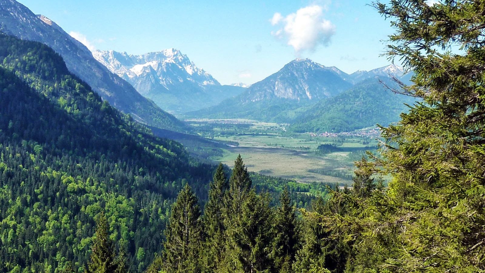 On jouit à diverses reprises de très belles vues sur la vallée du Loisach et sur le Zugspitze. Du sommet, vues sur la vallée du Loisach, Eschenlaue et le Murnauer Moos, ainsi que sur les Alpes de l’Ammergau (Ettaler Manndl, Hörnlegruppe), et sur l’ Estergebirge (Hohe Kisten, Simetsberg).