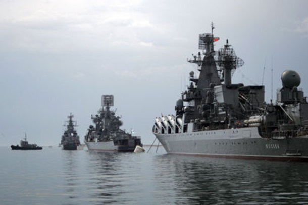 Par ailleurs, et toujours dans la même logique, des navires de la Flotte russe du Pacifique ont été détachés pour former une escadre permanente de la marine russe en Méditerranée (Référence « La Voix de la Russie » du 5 Avril). Le groupe d’une dizaine de navires, avec à sa tête le grand navire anti-sous-marin « Amiral Panteleev », plusieurs grands navires de débarquement comme le « Peresvet » et l’ « Amiral Nevelski » et deux navires de soutien et ravitaillement, a quitté la Mer de Chine et devraient passer le canal de Suez à la mi-Mai. Il devrait être subordonné au commandement de la flotte de la Mer Noire.
