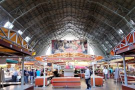 Aujourd’hui tous les cinq pavillons du marché abritent des spécialités différentes : la viande, le poisson, les légumes, les produits laitiers et la gastronomie variée. Le dernier était récemment rénové et plusieurs restaurants de cuisine mondiale y étaient installés.
