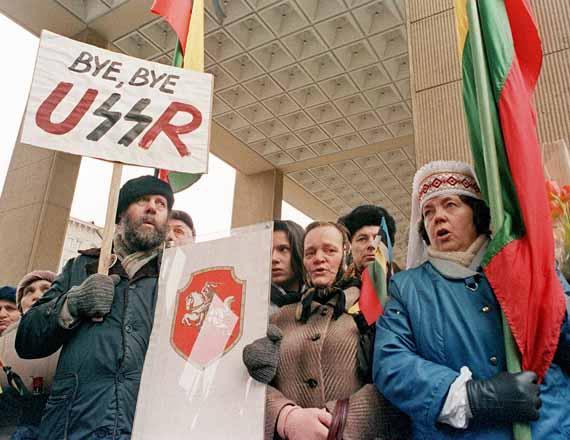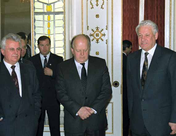 Le coup de grâce est donné le 8 Décembre 1991 par le Traité de Minsk (Беловежские соглашения, du nom de la Forêt de Belovezhskaya, 70 km au nord de Brest ex-Litovsk, au Belarus, où s’est en fait déroulée la réunion). Boris Eltsine, Stanislau Shuskevich et Leonid Kravtchouk, respectivement Présidents de Russie, du Belarus et d’Ukraine, constatent « que l’Union des Républiques socialistes soviétiques, en tant que sujet du droit international et réalité géopolitique, cesse son existence » . « Affirmant {leur} attachement aux objectifs et aux principes du Statut de l’Organisation des Nations unies, de l’Acte final d’Helsinki et d’autres documents de la Conférence sur la sécurité et la coopération en Europe », ils décident de la Création de la Communauté des Etats Indépendants (C.E.I. – СодружествоНезависимыхГосударств).