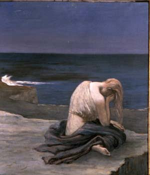 Il s’approcha et, reconnaissant sa sœur et sa mère, il se dit que ce n’était pas possible et qu’il devait être en train de rêver. Pourtant elle tournèrent la tête et lui sourirent. Il vint s’asseoir près de sa maman et posa tendrement sa tête contre son épaule. C’est alors que sa sœur, contre toute attente, se déshabilla complètement et entra nue dans l’eau bleue. Elle riait et s’aspergeait autant qu’elle pouvait, heureuse comme jamais elle n’avait été. Il la regardait s’ébattre tout en admirant son corps de fille, si beau, si fin, si élancé. Alors il sut qu’il l’aimait, qu’il l’avait toujours aimée. Il voulut le dire à sa mère, mais il s’aperçut qu’elle aussi s’était avancée dans l’eau. Elle avait les mains autour de la poitrine et le regardait d’un air désapprobateur, presque courroucé, comme cette fois où il l’avait surprise dans la salle de bain. Déjà le moment de bonheur s’éloignait et il commençait à se sentir coupable quand sa sœur poussa un hurlement de terreur avant de disparaître dans les flots tumultueux. Il se jeta aussitôt à l’eau pour lui porter secours, mais ne vit rien. Il eut beau plonger et replonger, il n’y avait plus personne, elle avait été emportée par le courant ! Désespéré, il chercha sa mère du regard, mais se rendit compte qu’elle aussi avait disparu et que probablement elle avait également été engloutie au milieu des tourbillons. Il sortit de l’eau sur la rive opposée et se mit à marcher dans le sable, seul, désespérément seul. On ne voyait que des dunes jaunes et ocres, qui s’étendaient jusqu’à l’horizon, alors que le soleil, d’un rouge éclatant, commençait à décliner. Il faisait chaud, si chaud et il avait soif, si soif…