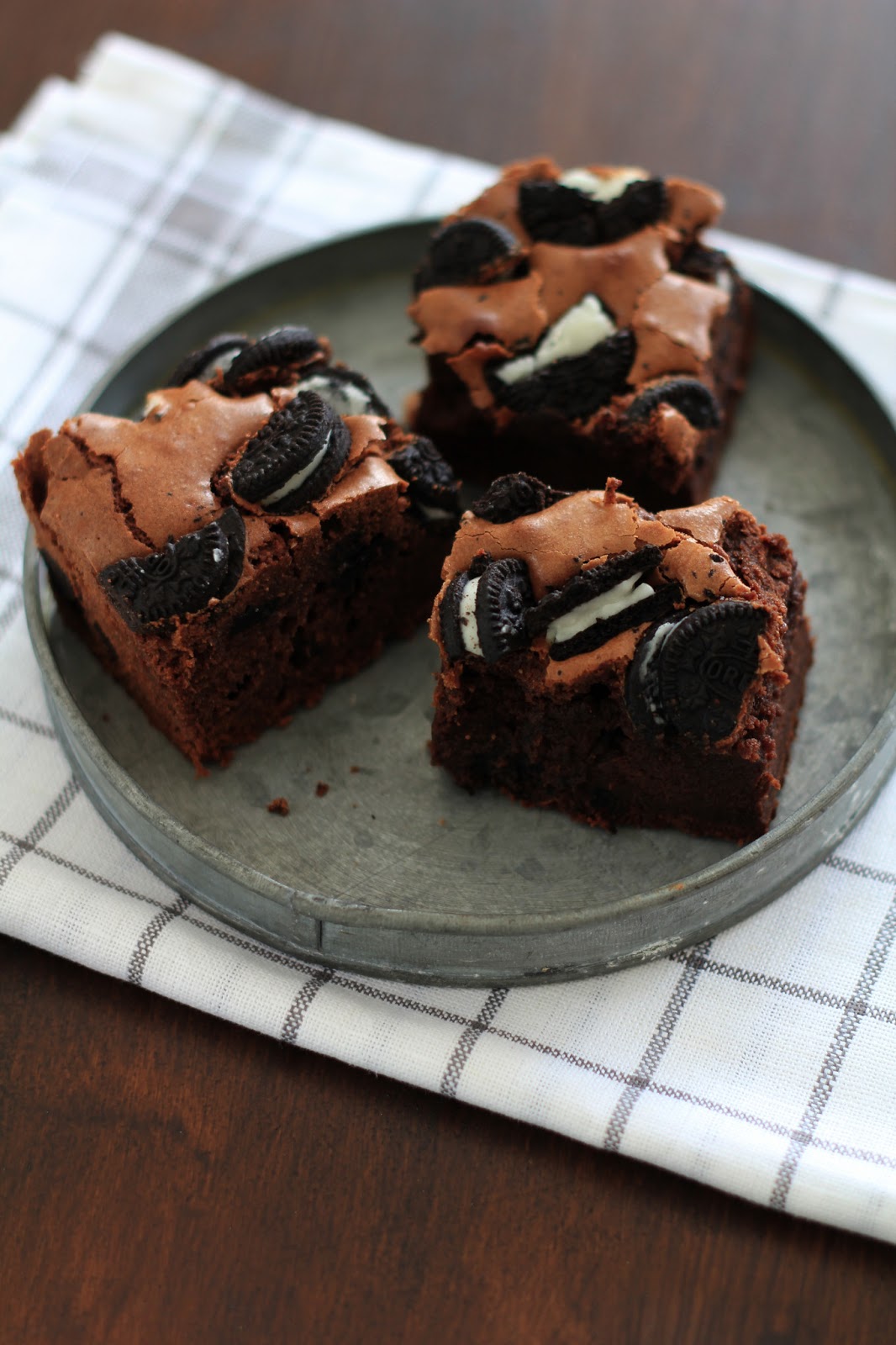 Pour faire plaisir à mon étudiante ,avant qu’elle ne reparte passer ses partiels , très chocovore ,je savais qu’avec cette variante du brownie elle serait très contente . L’association du gâteau Oréo dans la pâte du brownie est très agréable.Nous l’avons dégusté tiède … je vous laisse imaginer comme c’était bon non très très bon !!