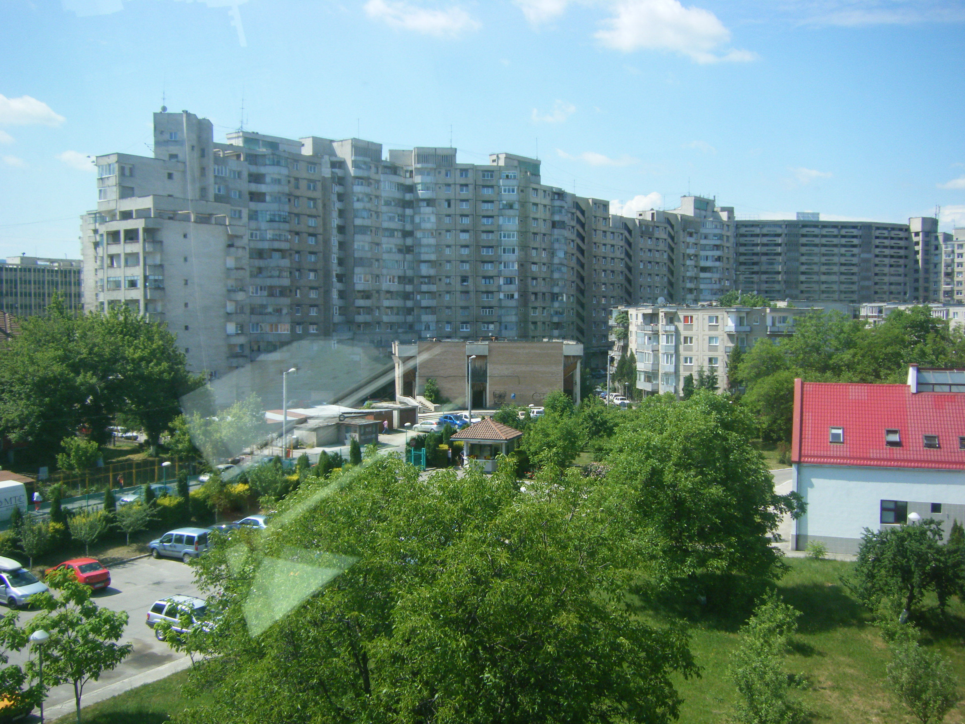Je termine par cette photo, il s’agit de la vue de mon logement. En arrière-plan tu peux voir les immeubles datant de la période communiste, j’habitais dans l’un d’entre eux dans un quartier appelé Marasti près du centre-ville. Tout autour était dans ce style, grande, sombre et pas très joli, ce qui contraste avec le centre-ville de Cluj qu’on a pu voir plus tôt. J’avais un logement avec les parois fines qui me permettaient d’entendre mon voisin du dessous ronfler, une salle de bain sans lavabo mais c’était super quand même.