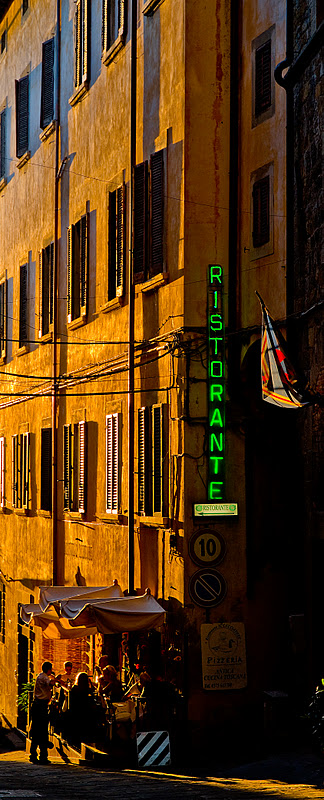 Apéritif sur piazza Signorelli ; Cortone est très agréable le soir, même si le village est assez escarpé comme Montepulciano, il est demeuré très typique et il y a une vraie ambiance le soir.