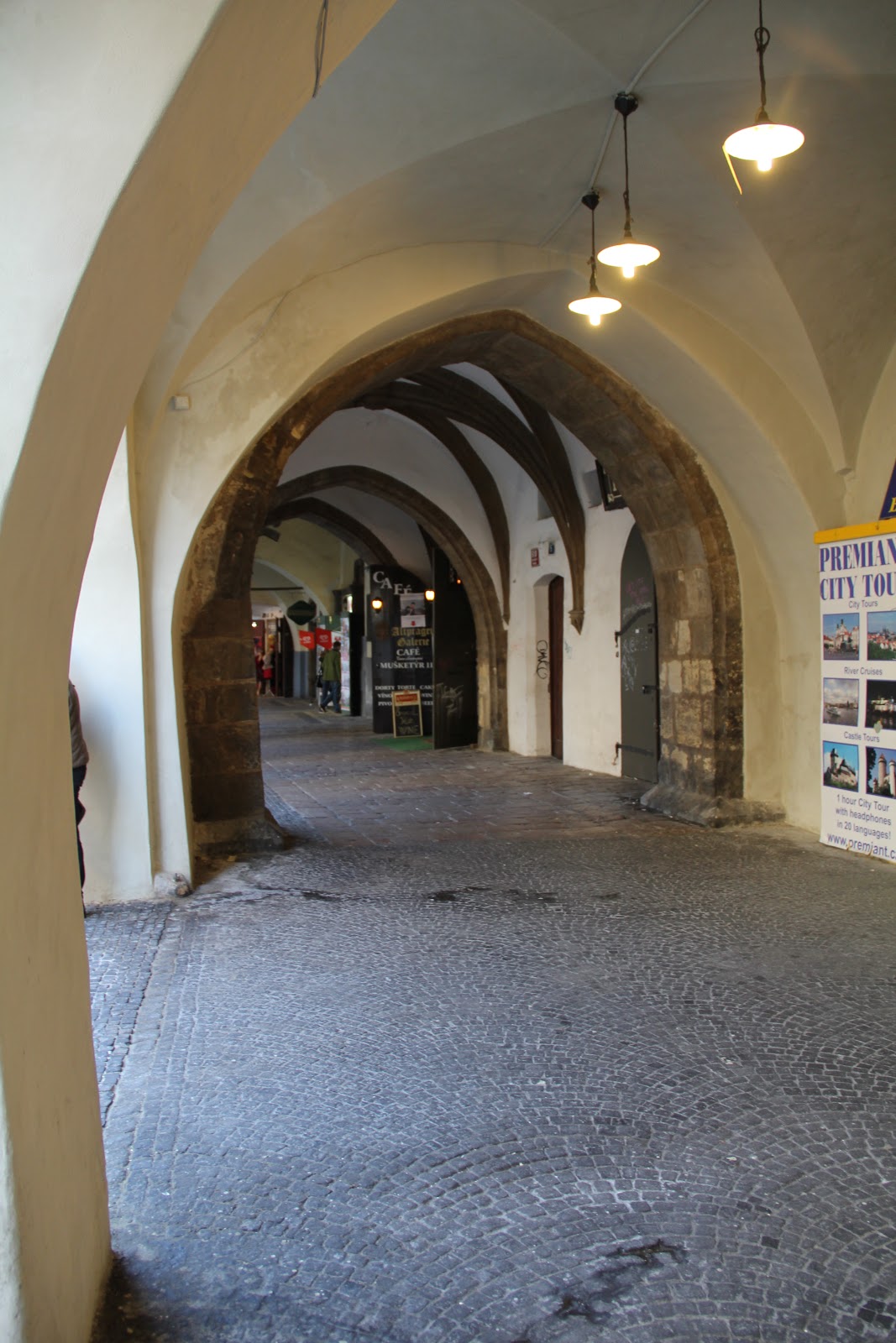 Nous avons goûté et regoûté une spécialité locale : trdelnik , c’est une pâte qui est entourée sur un cylindre en bois et cuite au feu de bois , elle est roulée dans les amandes , le sucre et la cannelle . Elle est croustillante à l’extérieur et plus molle à l’intérieur , elle se mange avec les doigts dans la rue